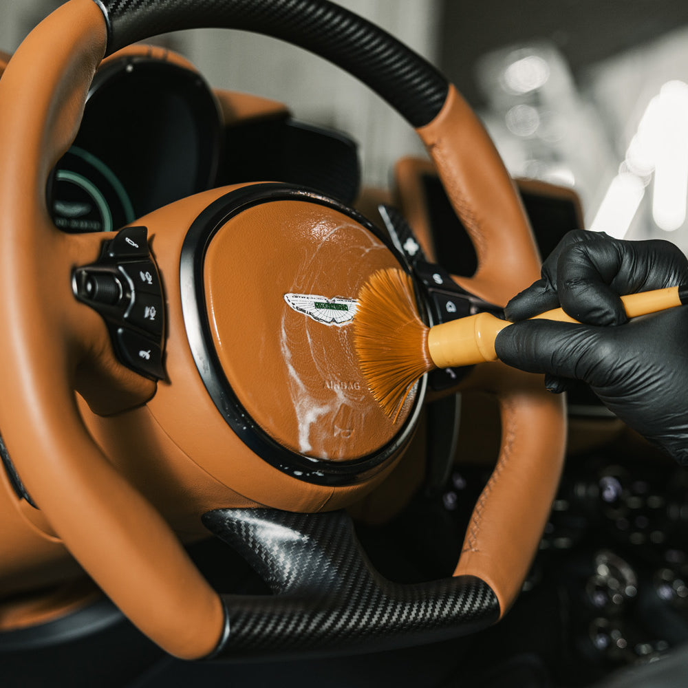 - Leather seats are cleaned with a pH-neutral leather cleaner and then nourished with a conditioner